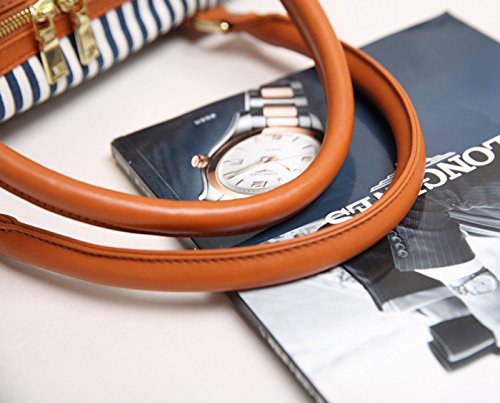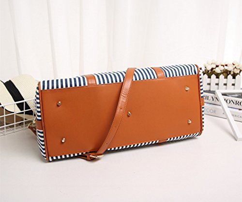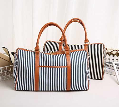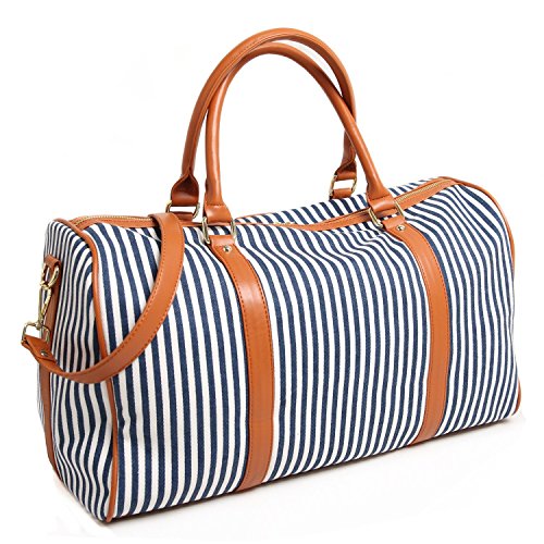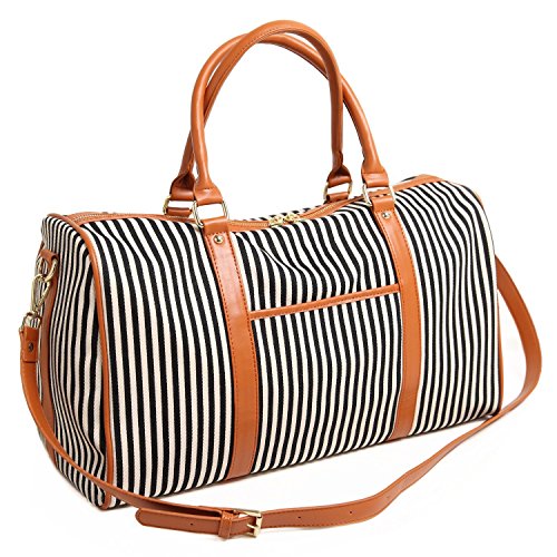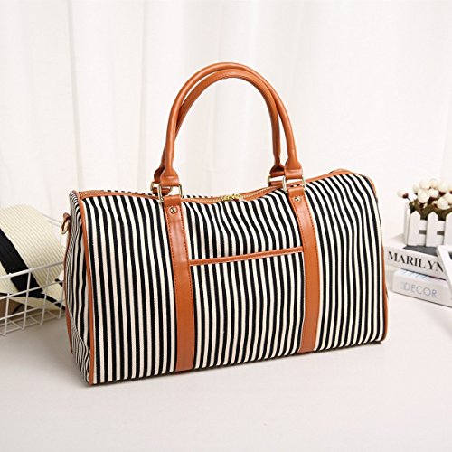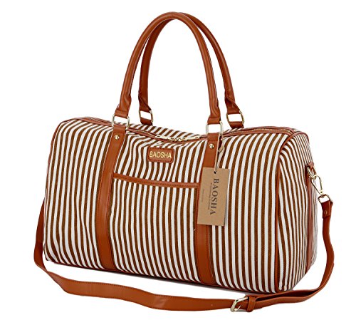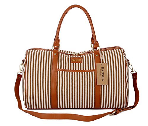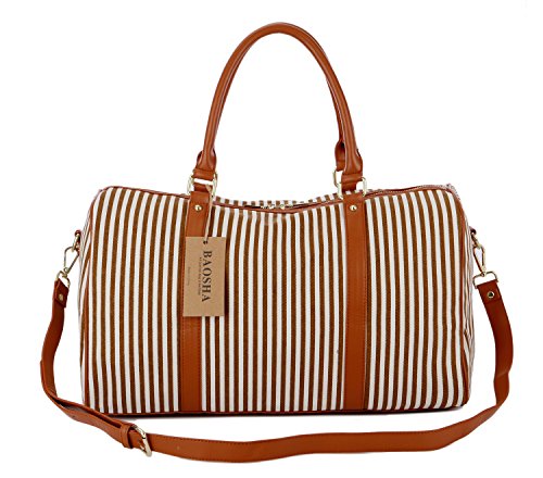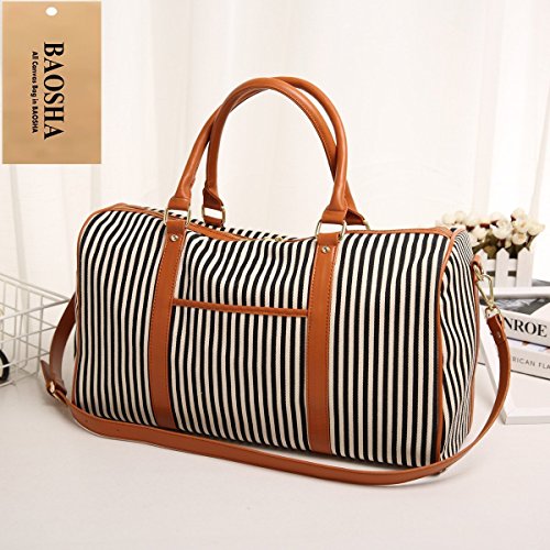 BAOSHA HB-25 Ladies Women Canvas Holdalls Weekender Bag Travel Duffel Tote Bag Weekend Overnight Travel Bag Handbags with Strips and PU Leather Decoration