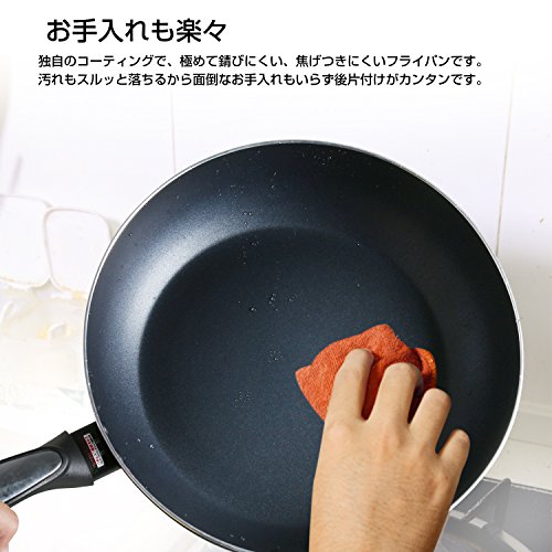 弊社のフライパンは独自のコーティングで、極めて錆びにくい、焦げつきにくいフライパンです。汚れもスルッと落ちるから面倒なお手入れもいらず後片付けがカンタンです。