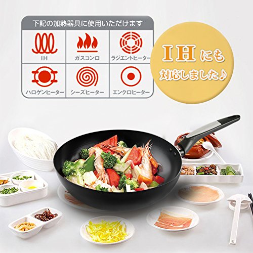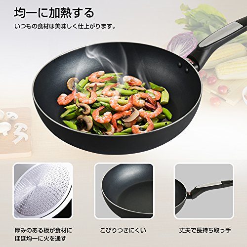 調理面が広く設計されたワイドタイプのフライパンです。熱伝導率の良いアルミニウムで効率よく調理できるので、食材にほぼ均一に火を通し、いつもの食材が美味しくプロ級の仕上がりに!内面は優れた耐久性のテフロンプラチナ加工を採用して、こびりつきにくいです。