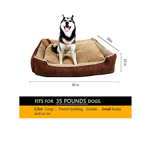 -. Feature : Ideal for medium/large size or multiple smaller dogs 32 x 22 x 7Inch (LWH); Can easily hold 100+ pound weight,Fits for any seasons for dog and cats / Top-of-the-line workmanship and premium materials, it is built to both provide the ultimate sleep experience with superior overall comfort and to last. Perfect for dogs of any ages, especially older dogs with joint, bone or arthritic problems / Made by imported PP cotton,Ultra soft,durable and machine washable,and have strong bounce and keep warm well. / Corn pillow is good for sleeping and he also can play with it. / The pet house are double-used for indoor and outdoor,you can take out inner mat at random.100% customer satisfaction guaranteed