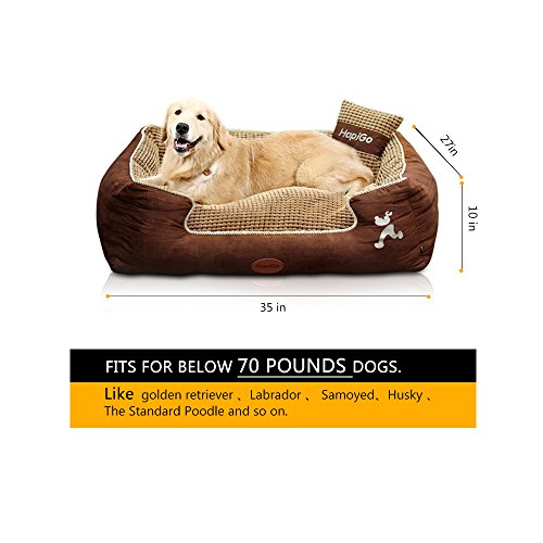 -. Title : HappierGo Waterproof Dog bed With Corn Pillow-Ultra soft, Durable, Washrable with Removable Cover,Large