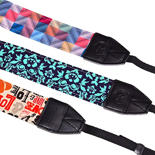 RoryTory 3pc Flower and Quotes Design DSLR Camera Shoulder and Neck Strap Bundle
