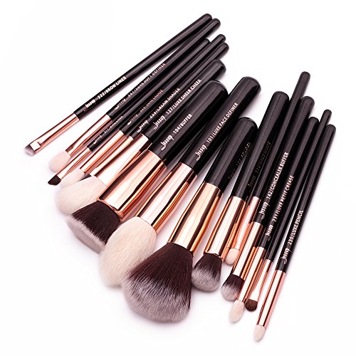 Jessup 15Pcs Rose Gold/Black Professional Makeup Brushes Set Make up Brush Tools kit Foundation Powder Definer Shader Liner T160