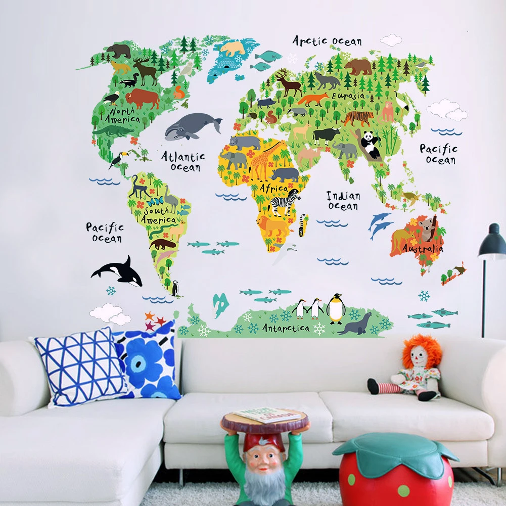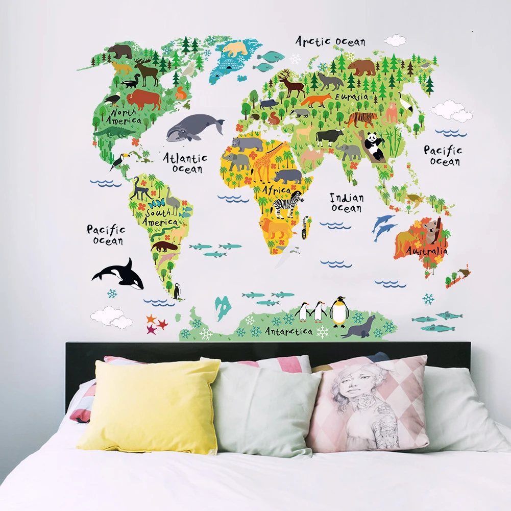 Model Number:Animal World Map Wall Sticker