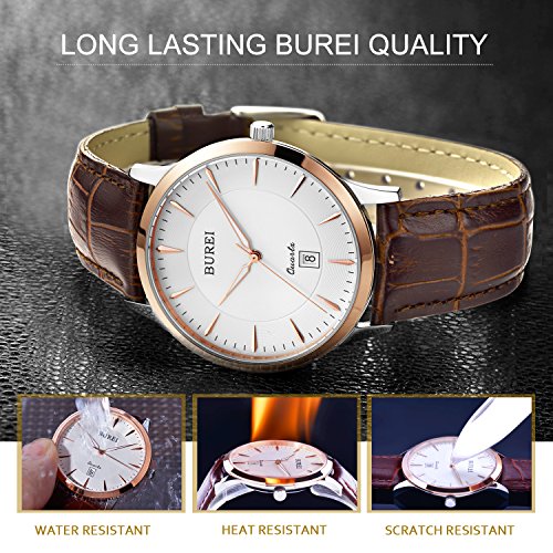 -. Title : BUREI Men's Thin Dress Watches with Rose Gold Hand White Dial Sapphire Crystal Brown Leather Strap