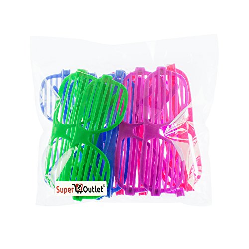 Have a blast from the past at your next summer party. This set of 12 style sunglasses make awesome party favors for your next 80s party. Assorted colors of purple, blue, pink and green. Fun for adults and children alike.Feature