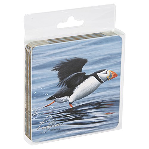 Tree-Free Greetings Set Of 4 Cork-Backed Coasters, 3.75 x 3.75 Inches, Puffin Running Themed Wildlife Art (52723)