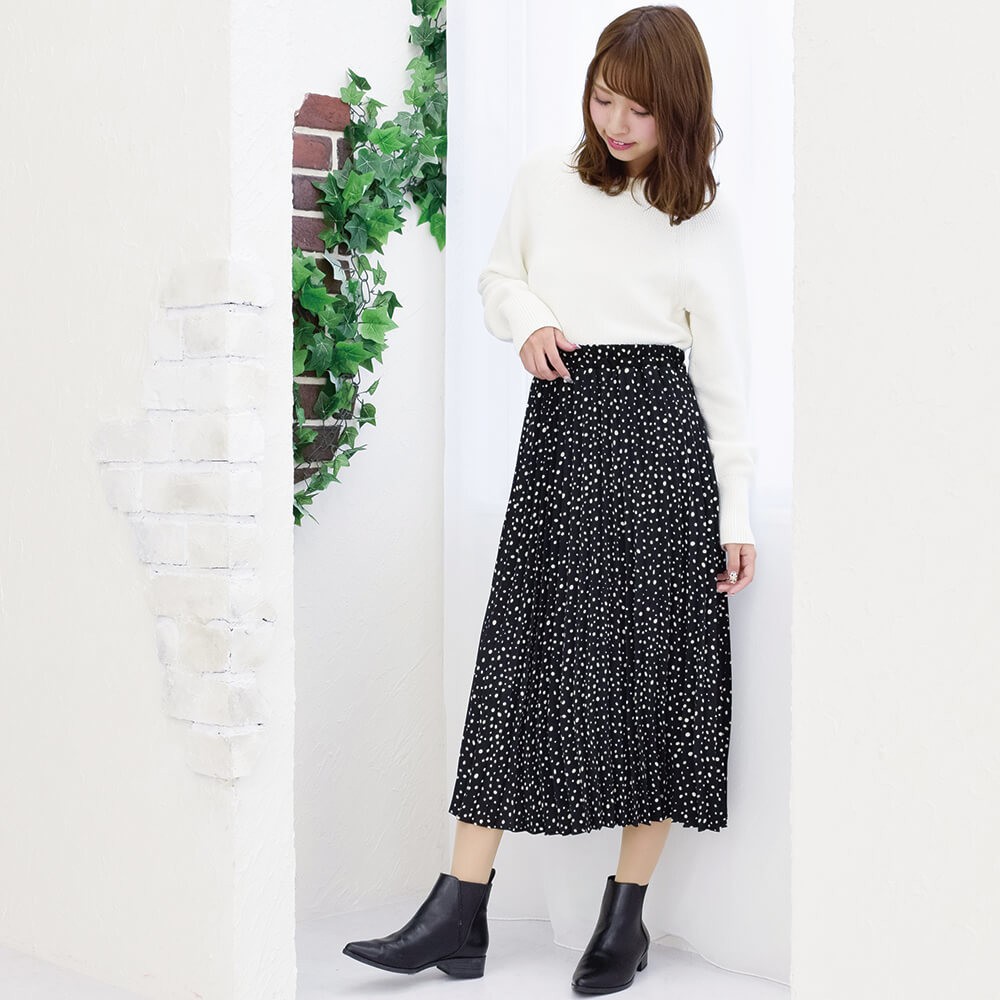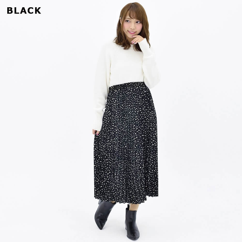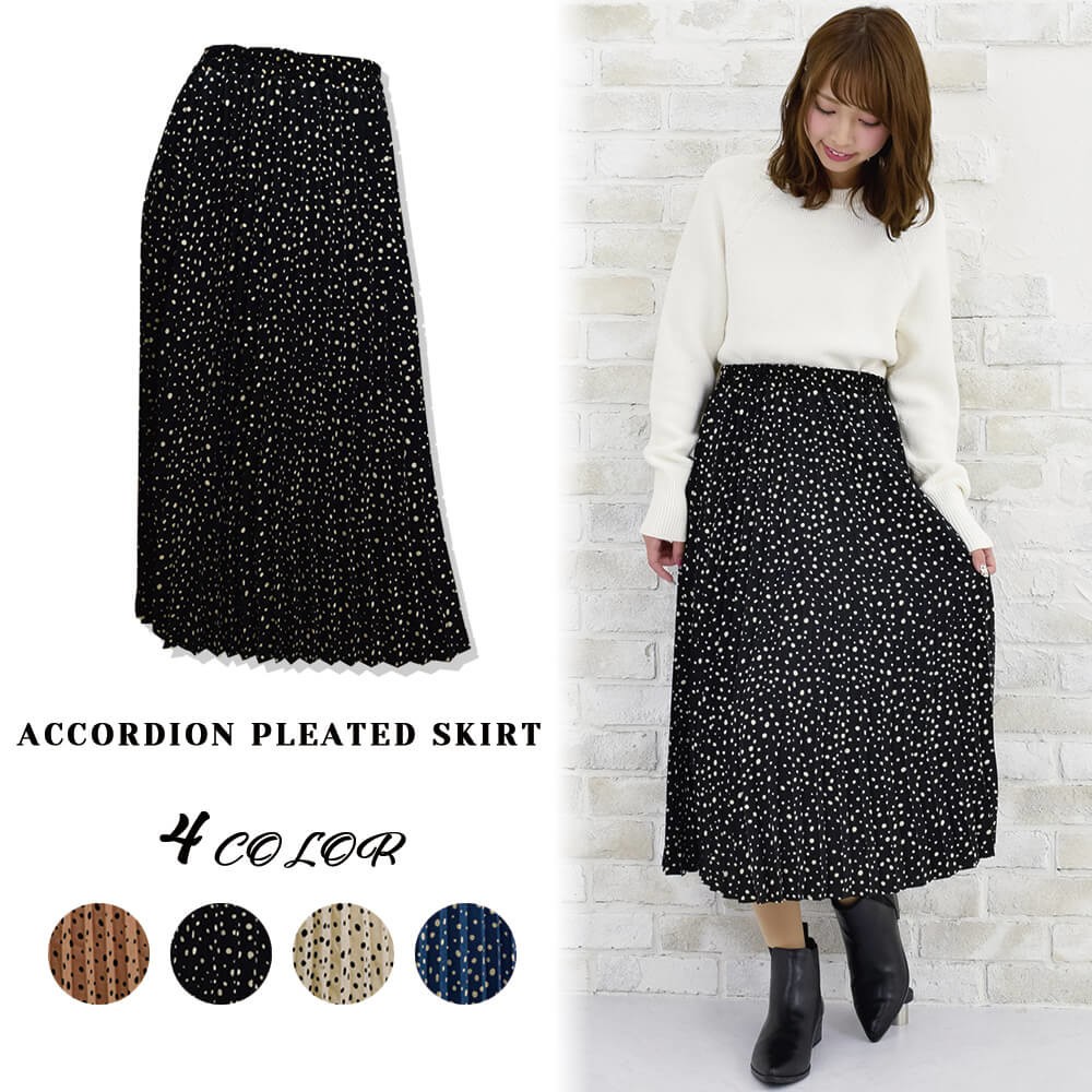 ランダム水玉アコーディオンプリーツ77丈スカート