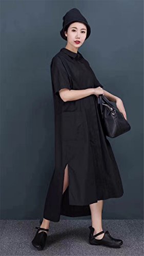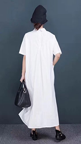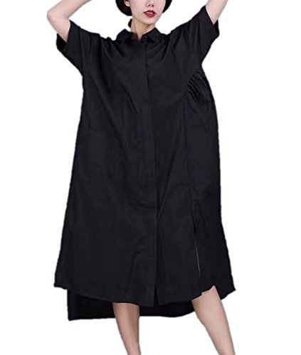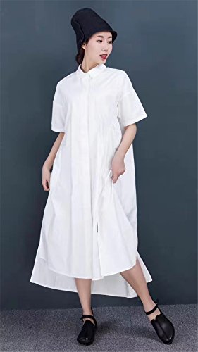 -. Title : Yesno QR7 レディース ロング ルース マキシ シャツ ドレス 綿100% ボタンダウン 高低裾 スカート バックギャザーサイドウエスト