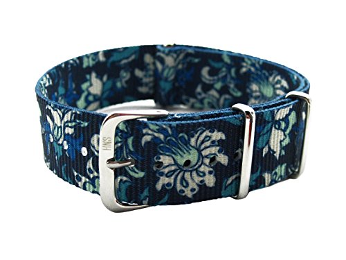 -. Title : HNS 20mm Double Graphic Printed White Flower Blue BG Ballistic Nylon Watch Strap Polished Buckle NT168