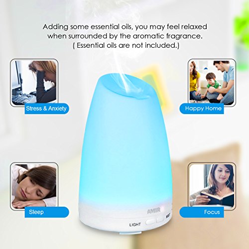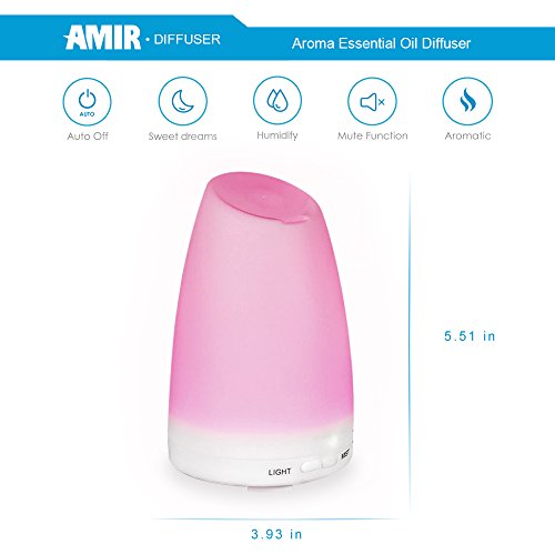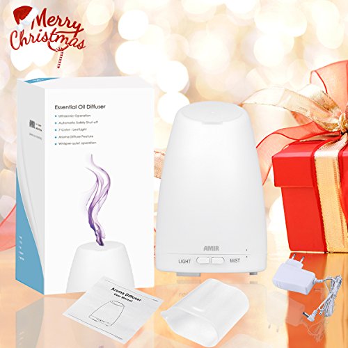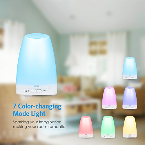 AMIR Aroma Diffuser, 150ml Diffusor Ultraschall Luftbefeuchter Tragbarer Aromatherapie Atherischesol Oil Diffusor mit 7 LED Farbwechsel Einstellbarer Nebel-Modus fur Babies Yoga Sc