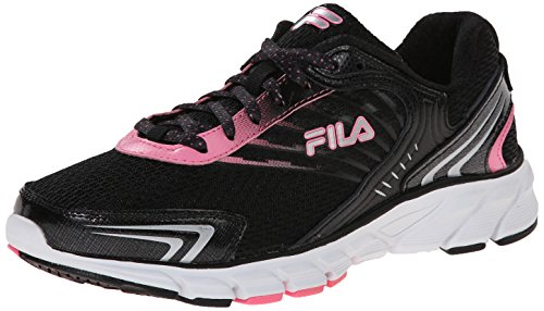 Fila Women's Maranello Running Shoe, Black/Sugar Plum/Metallic Silver, 6 M US