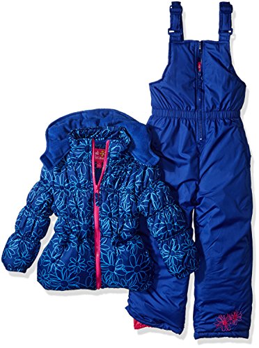Pink Platinum Little Girls' Tonal Floral Print Snowsuit, Royal, 6X