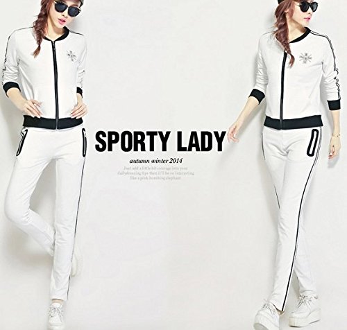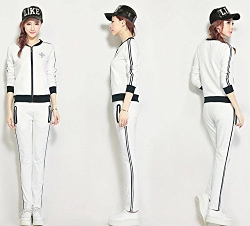 -. Title : 2016 neue Sommermode Casual Sportswear-Klagefrau mit langen Ärmeln Hosen zweiteilige Klagen der Fitness Trainingsanzüge, XL weiß