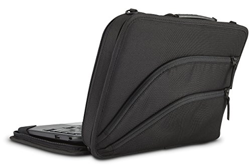 -. Feature : DURABLE anti-slip outside backing and tough ballistic nylon material keep the case in good condition. The super red YKK zippers with outward facing lace prevent binding, and the corner-rolled protection ridge structure with internal padding around all edges keeps the computer safe from drops / COMPATIBLE with most 11 to 11.6" Chromebooks, laptops, Ultrabooks, and 2-in-1s (Acer, Lenovo, Dell, HP, Asus, Samsung, and many more). Device dimensions must not exceed 11.57x8.25x1 in. / ALWAYS-ON-DESIGN with snap back cover and high quality silicone elastic grips that hold the computer securely in place. Allows full access to Chromebook when open / FUNCTIONAL dual foam bumpers form a powerful cooling and protection system under the device. Two organized external storage compartments provide extra capacity to hold power supplies, cables, thumb drives, business/student ID cards, etc. Device Identification window for easy student identification / PORTABLE with adjustable and removable shoulder strap with quick-connect carabiners