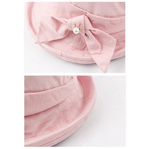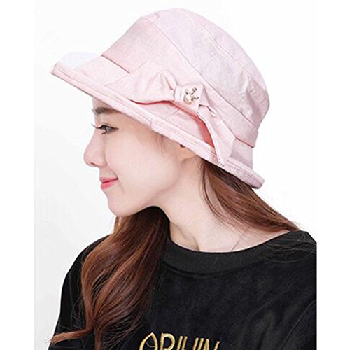 Lujuny Spring Bowknot Pearl Foldable Bucket Fishing Cap Brimmed Summer Beach Sun Shade Boonie Hat for Women You will like this hat and it provides good protection from the sun. And you will like the inside it keeps your hair from sweating without letting your scalp get sunburned. This hat adds a number of compliments when you taking pictures.