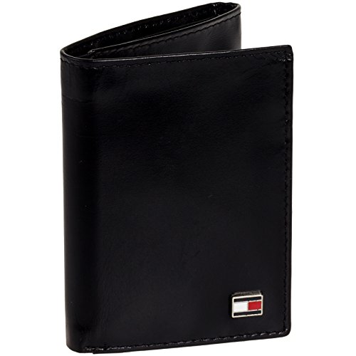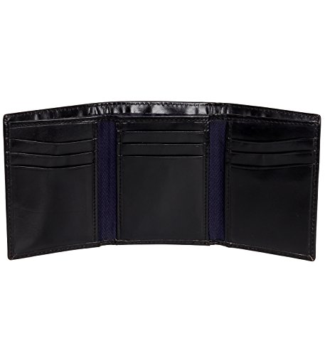 A sharp dressed man needs a sharply designed wallet. Carry your cash in style with this Smooth Leather Trifold Wallet from Tommy Hilfiger. Constructed of soft, genuine leather, this trifold opens to reveal a spacious interior sure to keep you properly organized. 9 card slots, 3 slip pockets, and fully lined bill compartment give you plenty of options when storing your everyday necessities. The exterior features metal Hilfiger logo, so everyone knows who you carry. Presented in a gift box. Measures 4.15" x 3.25" x .60" (when closed).Feature
