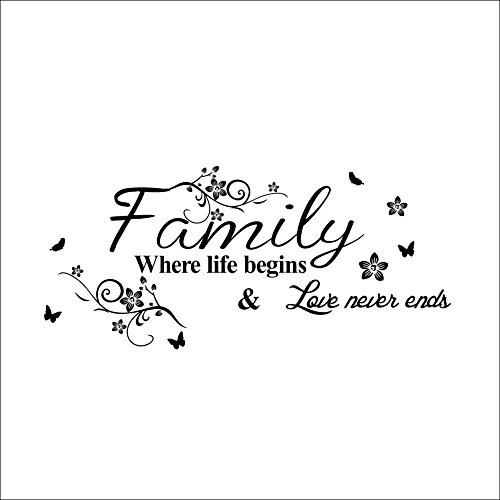 Family Where Life Begins Love Never Ends with Flowers and Butterfly Vinyl Removable Wall Quote Sticker Decal LUCKKYY