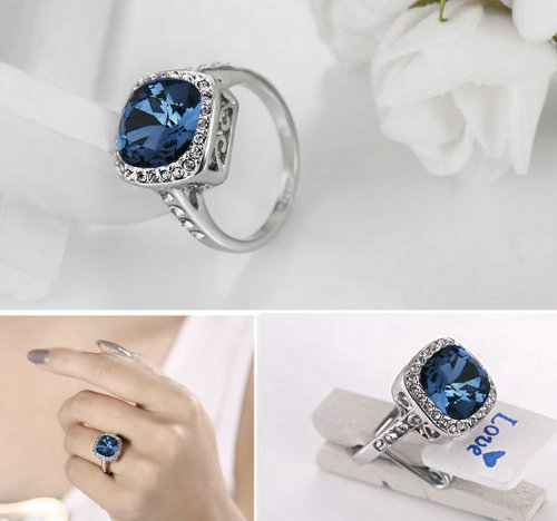 - Title : Yoursfs 2.5ct Sapphire with Austrian Crystal 18k White Gold Plated Blue Gemstone Engagement Ring (7)