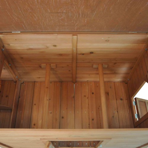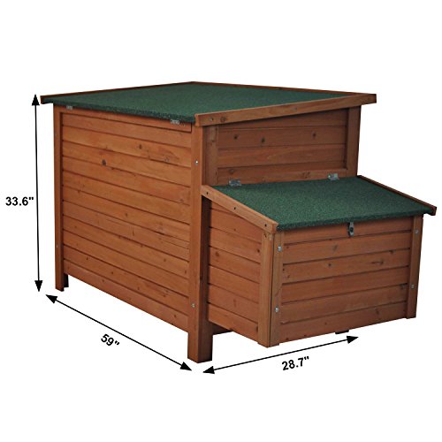 -. Feature : Hinged roof and door for easy cleaning or refilling of food and water / Indoor nesting area that your birds will love / Heavy duty wire that keeps birds in and predators out / Lockable metal slide bolts on all doors / Overall Size: 59.25"L x 28.75"W x 33.5"H