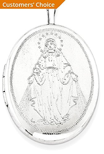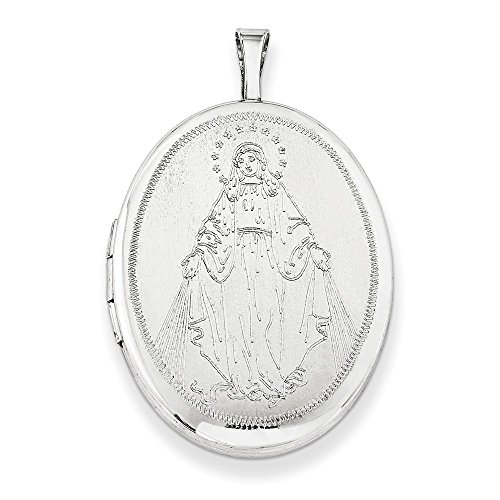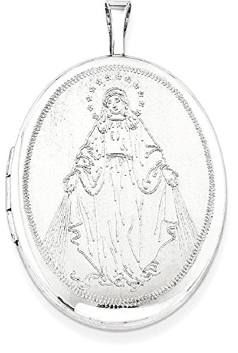 ICECARATS DESIGNER JEWELRY 925 STERLING SILVER 26MM BLESSED MOTHER MARY OVAL PHOTO PENDANT CHARM LOCKET CHAIN NECKLACE THAT HOLDS PICTURES