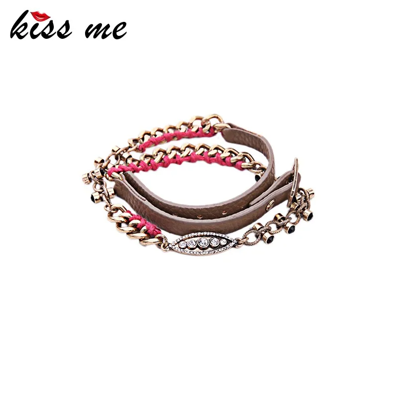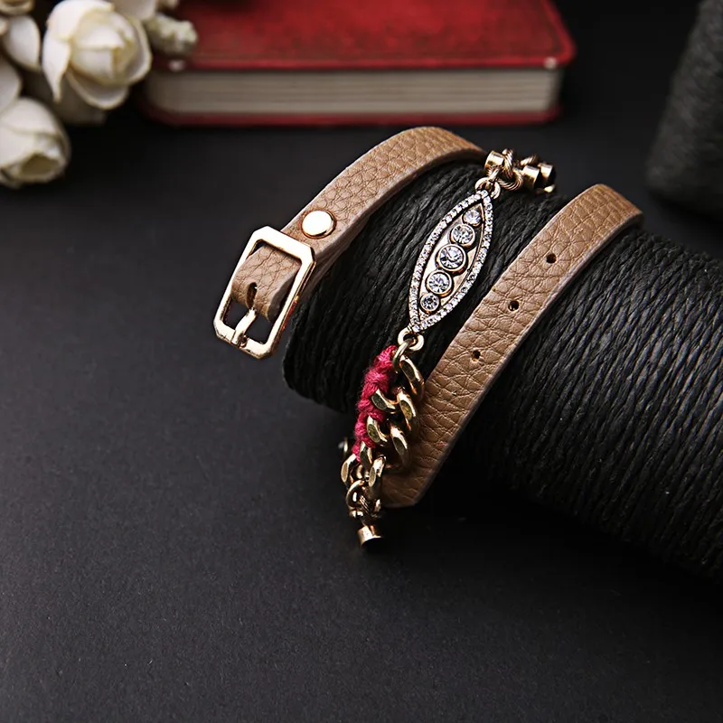 Production name ::Summer New Alloy Imitation Leather Wrap Bracelets
