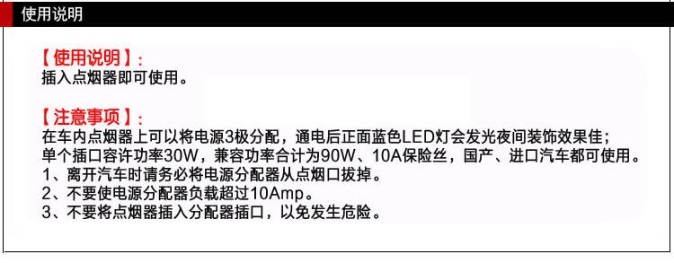 3, don't be a cigarette lighter socket into the distributor, to avoid danger.