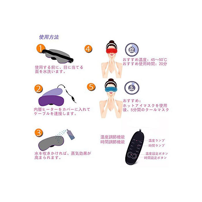 HORICH USB핫 아이마스구 타이머 설정 피로 눈(째)에 숙면 일 슬립 aid lavender 씻을 수 있다(4단계 온도 조절 기능) 일본어 취급 설명서