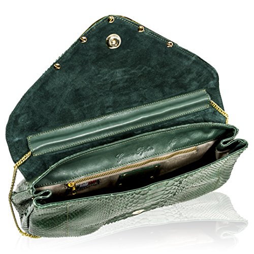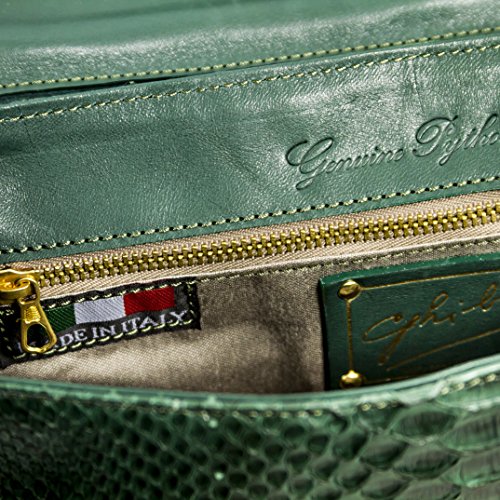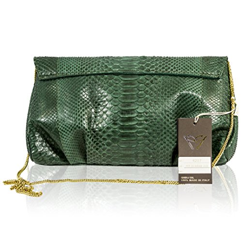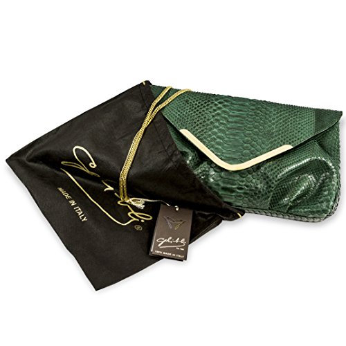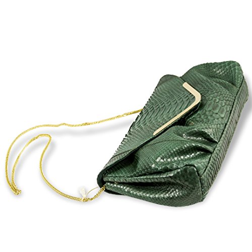 -. Title : Ghibli Italian Designer Emerald Green Python Leather Gilded Purse Large Clutch
