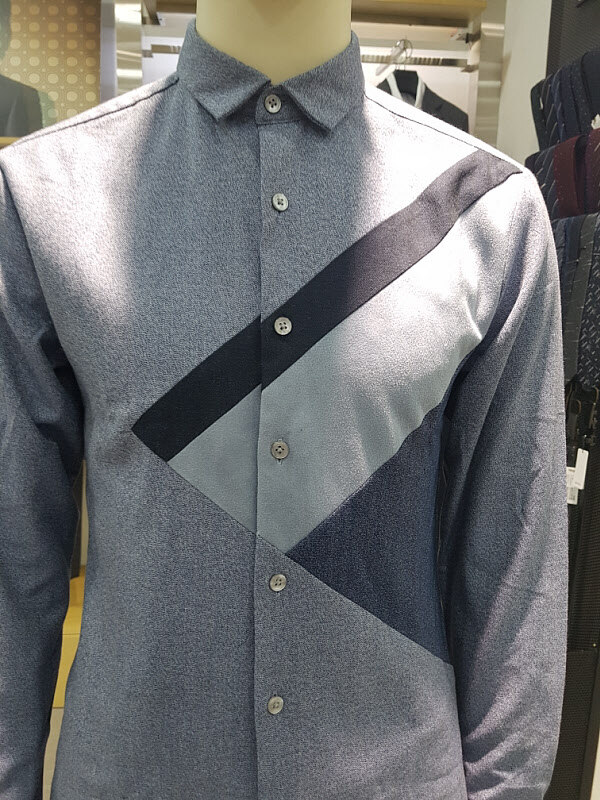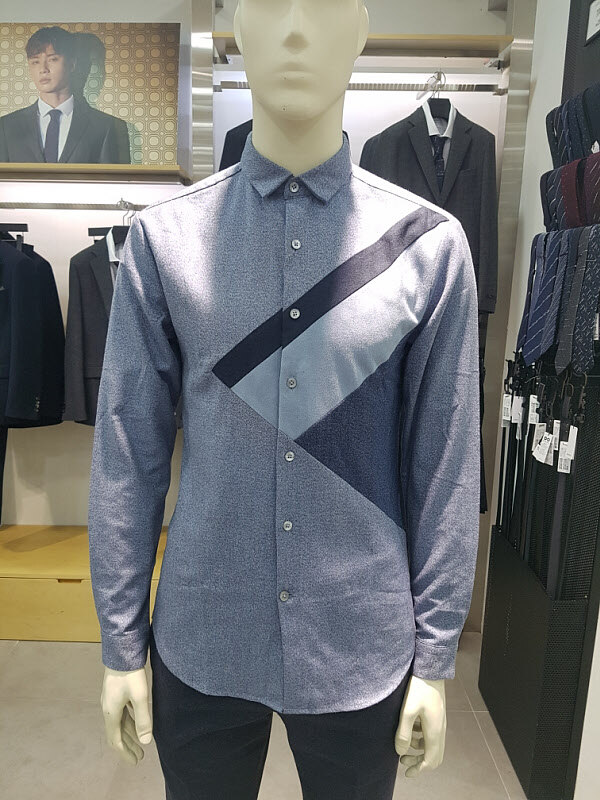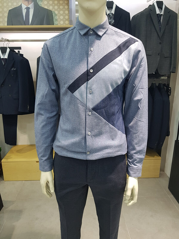 4.7c미니카라.아문젠 조직의 블루색상에 포인트를 준 블로킹 셔츠.