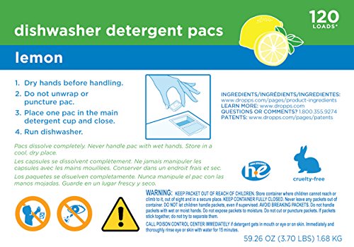 ReleaseDate : 2016-06-15 Studio : Cot'nWash Inc. Publisher : Cot'nWash Inc. Binding : Health and Beauty Product Description Drops Dishwasher Detergent pods will dissolve food debris, fight stains and make your dishes, glassware and silverware sparkle like new. Our natural detergent pods are biodegradable and environmentally-friendly, yet formulated to cut through the toughest grease and food particles. The pre-measured pods dissolve completely to remove stuck-on food and tough stains. The gentle scrub eliminates residue and protects glasses (even safe for fine crystal) from etching while the lemon scent leaves your glassware streak less and dishware smelling fresh and clean. Drops Dishwasher Detergent pods are pre-measured and 100% mess-free. All you have to do is load in your dishes and glasses, place 1 Drops dishwasher detergent pod in the detergent dispenser and start your machine. Our scented dishwasher pods are safe for septic tanks and compatible with all dishwashers - even European and small apartment models. Our hypoallergenic, non-toxic, and non-irritating dish detergent will even clean your dishwasher, leaving it mildew-free. 0