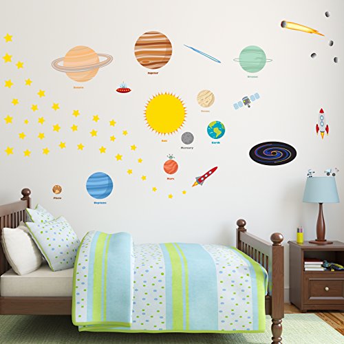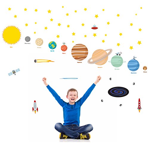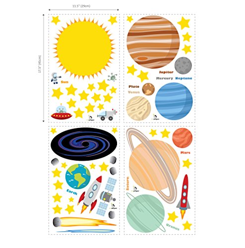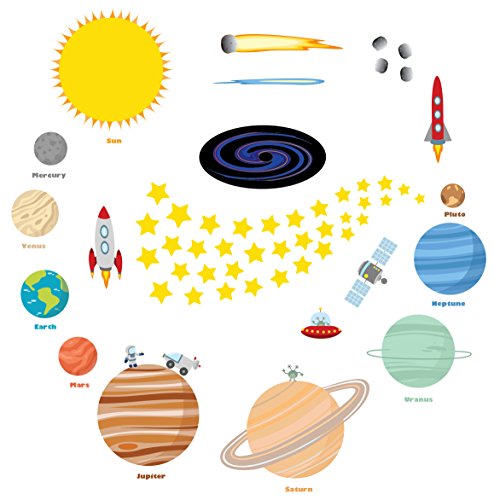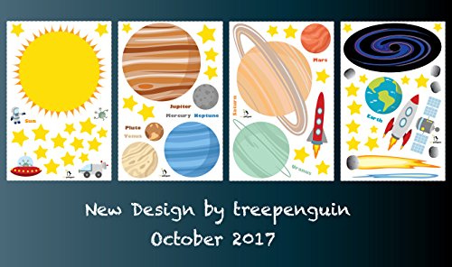 Blast into space and educate new learners about our solar system! Create A Cheerful Atmosphere Thanks To The Most Amazing Wall Art Decor Which Are Bound To Catch Every Child's Attention! Planets in Space by treepenguin presents you with the ultimate wall art decals which are the perfect choice for kid's bedrooms, classrooms, playrooms, nurseries and more! 70 Vibrantly Colored Solar System Decals Which Are Made Of Incomparably Durable Material Each set includes 4 wall decals sheets which feature a 12" x 18' size each! This set contains a Sun, 8 planets (Mercury, Venus, Earth, Mars, Jupiter, Saturn, Uranus and Neptune), 1 dwarf planet (Pluto), 1 black hole, 36 stars, 4 moon rocks, 2 aliens (1 standing and 1 in a spaceship), 2 rocket ships, a comet, a meteor, an astronaut and a space exploration vehicle. Every single figure features impressive, attention catching, bright colors which make the scene lively and excitingly vivid! Peel, Stick And Remove Them Without Damaging Your Walls Forget about cheaply made kids room wall art decals which require too much time and effort to be properly installed. These incredible decorative wall stickers for boys and girls are pre-cut and you can effortlessly apply them on any smooth surface. Place Your Order Now While Supplies Still Last! 0 |