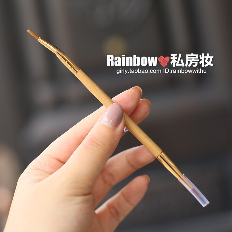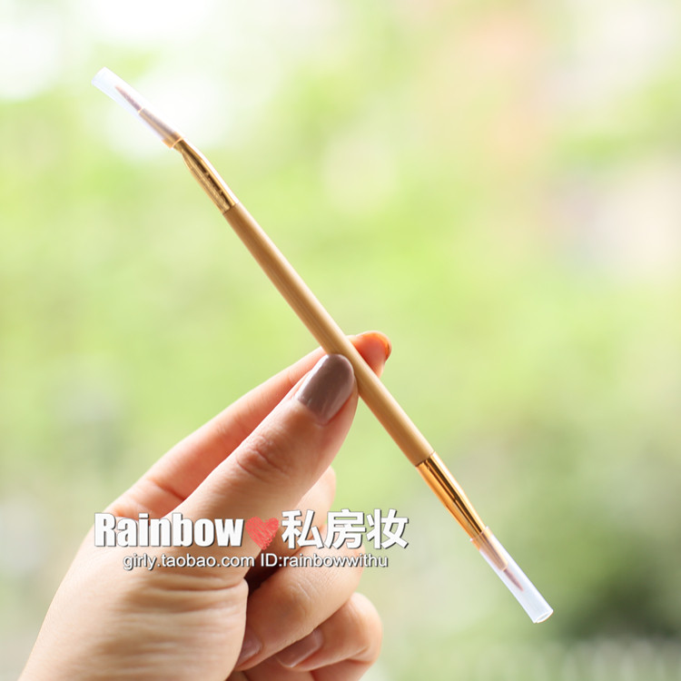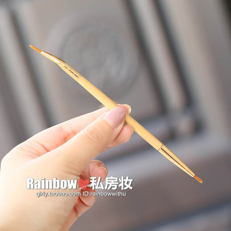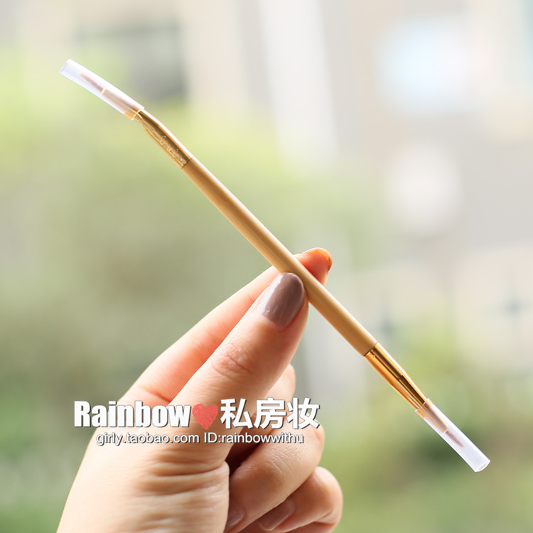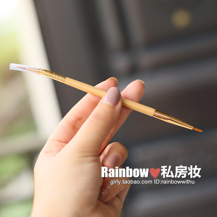 tarte迷的最爱,天然竹柄,美国官方要10美金一把~~Rainbow家仅售6.5人民币。。。两头的刷子,是一样的,只是一头是直头,一头是弯头!比较适合眼线液,眼线粉,或者在已经画好的眼线上面做修饰,画尾巴等!也可以用于唇线的勾勒~~不适合直接来画眼线膏哦!眼线膏只能是扁头的刷子才能刷~~!属于精细眼线刷~~