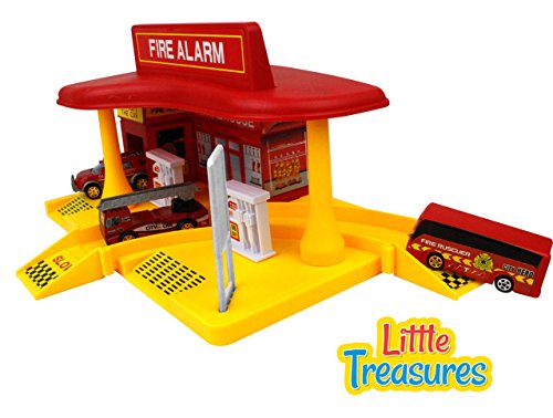 -. Feature : Three different vehicles are included with this toy set different fire trucks, a tow truck, a ladder truck, and a fire truck / Designed with a very high quality construction, the alloy fire response vehicles will be safe and durable for the children in your life to enjoy / The station includes a warehouse, a car wash, repair center with a ramp, and a fueling station / This toy is rated for children aged three years and older