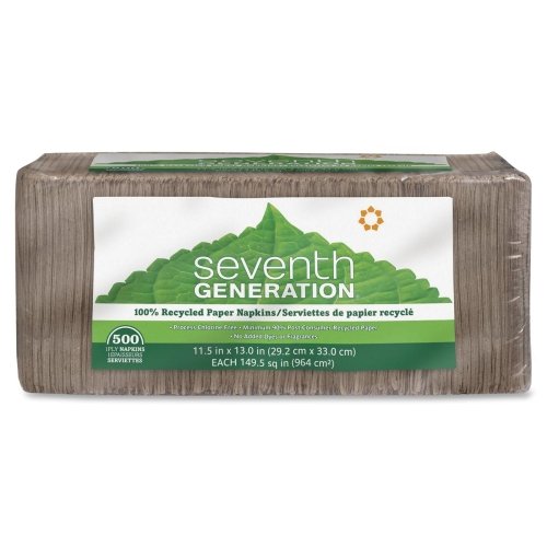 -. Title : Seventh Generation 100% Recycled Napkins - 1 Ply - 500 Per Pack - 500 / Pack - 11.50" x 13" - Brown - Paper