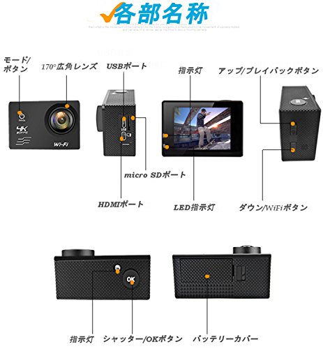 원본상품명:Zenjin 4Kスポ?ツ/アクション/ウェアラブルカメラ WiFi搭載1200万?素170度?角レンズ30M防水/15Mリモコン遠隔操作&豊富な19個のアクセサリ?set