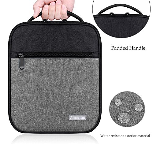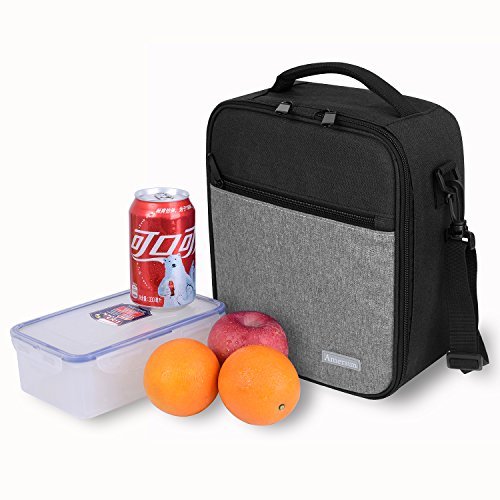 Lunch Bag, Amersun Water Resistant Insulated Oxford Lunch Box with Firm Foil,Thermal Cooler Tote Bag Picnic Holder with Shoulder Strap for Women Men Girls Boys Kids Adult,2 Zipper Pockets(Black Gray)
