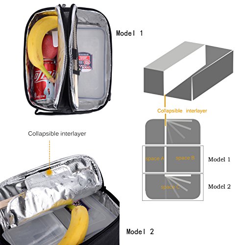 - DOUBLE DECKER DESIGN - Features an adjustable divider with velcro design to divide the main compartment into two sections which allow you to store hot and cold food separately. Two zipper closures are designed for easy access to stored foods. NOTE: Zipper Not Fully Open for food containers can be stored separately.