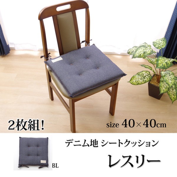 【商品名】クッション 椅子用 シート デニム風 『レスリー』 約40×40cm 2枚組