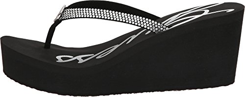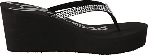 Binding : Apparel Product Description Put a little sparkle in your day with the Sechi wedge sandal from GUESS®! Synthetic upper with jeweled embellishments. Metallic logo plaque. Cushioned footbed. Man-made platform and wedge heel. Man-made outsole. Imported. Measurements: Heel Height: 2 3?4 in Weight: 6 oz Platform Height: 1 in Product measurements were taken using size 8, width M. Please note that measurements may vary by size. 0