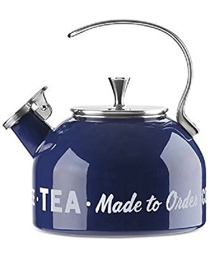Shimmering in royal blue enamelware, the elegant and eye-catching Kate spade new York All in Good Taste Kettle will add bright color to any kitchen. Beautifully crafted, this lovely kettle is inscribed with the words "Tea Coffee Made to Order". A great housewarming or bridal shower gift.