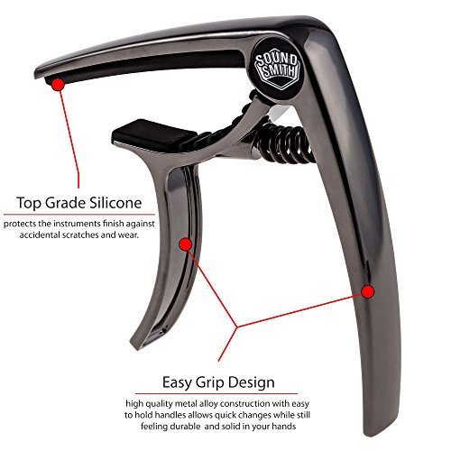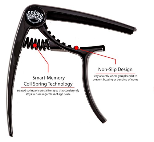 Soundsmith Premium Guitar Capo - Designed For Acoustic and Electric Guitar - No Fret Buzz, Smart - Memory Coil Spring Technology, Single Hand Quick - Change, Top - Grade Silicon, Lifetime Alloy Metal, Also for Banjo, Ukulele, and Mandolin, Best quality ca