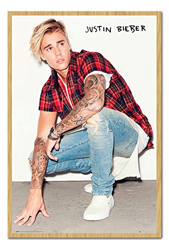 -. Title : Justin Bieber Crouch Poster Magnetic Notice Board Beech Framed - 96.5 x 66 cms (Approx 38 x 26 inches)