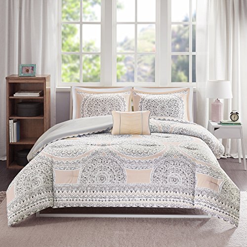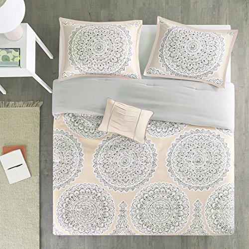 ADELE COMFORTER SETBright and colorful, the Comfort Spaces Adele Comforter Set adds a charming update to your bedroom décor. Large medallions pop against the soft blush ground, while intricately designed borders line the foot and head of the comforter. Matching sham(s) showcase an overSized medallion to coordinate beautifully with the motif of the comforter and helps round out the look. With the inclusion of a decorative pillow, this comforter set is the perfect addition to your bedroom.