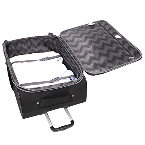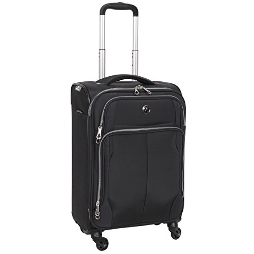 -. Feature : Ultra lightweight construction / Bottom polypropylene tray for added durability / 4 Spinner wheels for easy mobility / Durable dobby nylon body material / 14x8x20