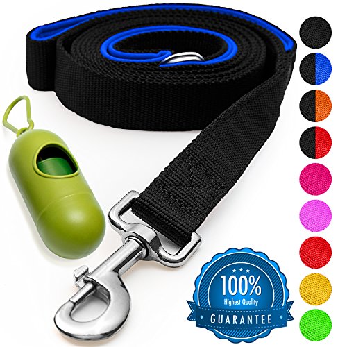 ? FREE GIFT!A handy clip on poop bag dispenser with lavender scented bags ? STRONG: 100% Nylon with reinforced stitching, and neoprene padding ? RUST FREE: Zinc alloy clips and D-rings ? PERFECT SIZE:6ft long, 1 inch wide and 2mm thick leash ? FOR MEDIUM AND LARGE DOGS:100lb heavyweights and chewers! ? 12-MONTH WARRANTY:Always there if you need it!