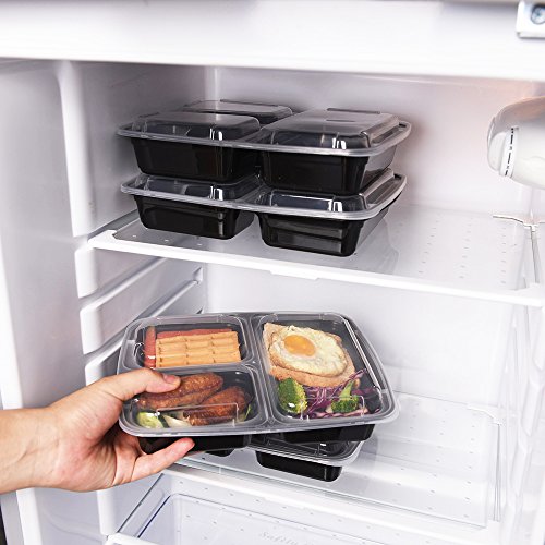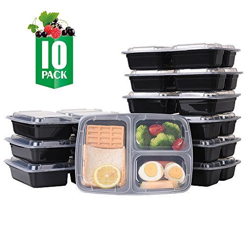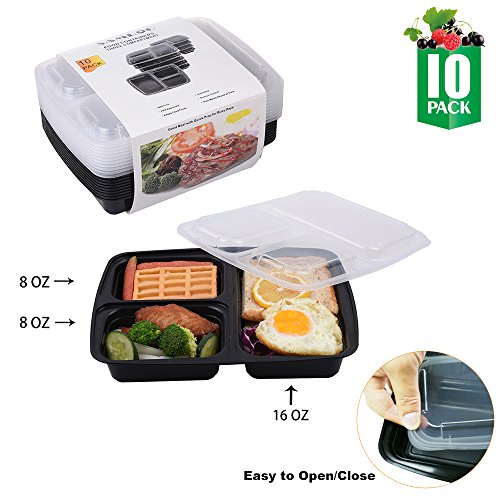 THREE COMPARTMENTS FOOD STORAGE CONTAINERS: This 10-Pack set of Bento Boxes features 3 different compartments so you can freeze or take with you a complete meal just in one container. Capacity as follows: 8 oz, 8 oz & 16 oz, 32 oz total.
