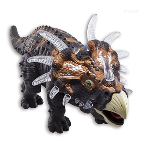 The WolVol Walking Dinosaur Triceratops Toy gives the kids all the sounds and action of a real Triceratops Dinosaur. Run after the Triceratops while he walks away by himself. Very attractive and interesting. Great gift idea for children who love Dinosaur toys.Feature