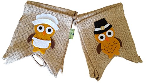 Bungalow Ikkis Thanksgiving Accents Pilgrim Owl Couple Thankful Burlap Banner