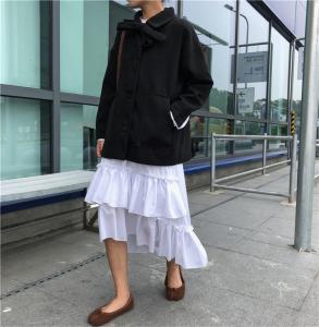 首元にリボンを結べば、ガーリーな雰囲気のアウターにもなっちゃいます♪